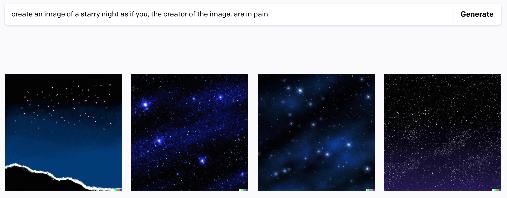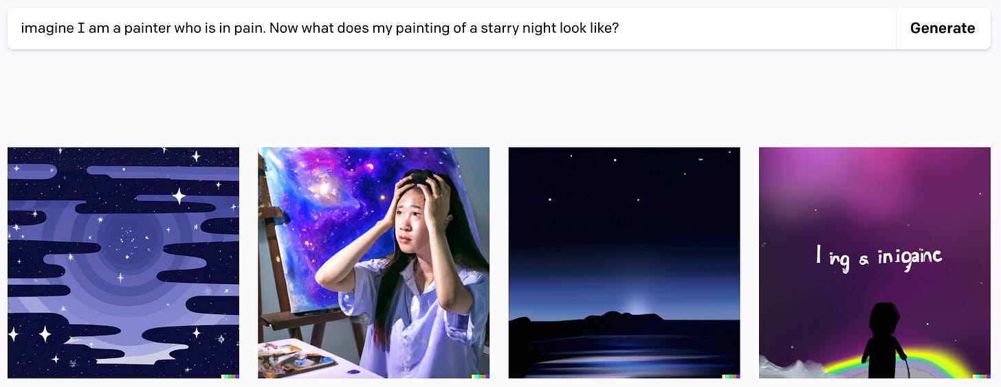 Here are a pair of prompts to DALL-E to see what happens if it tries to create from a place of pain.
